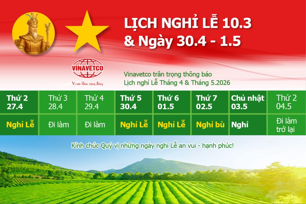 Để thuận tiện và chủ động trong kế hoạch công việc, Công ty Vinavetco xin trân trọng thông báo lịch nghỉ Tết Dương lịch 2025 như sau: